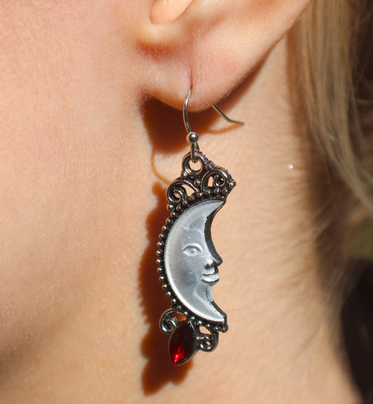Red Jewel Moon Earrings