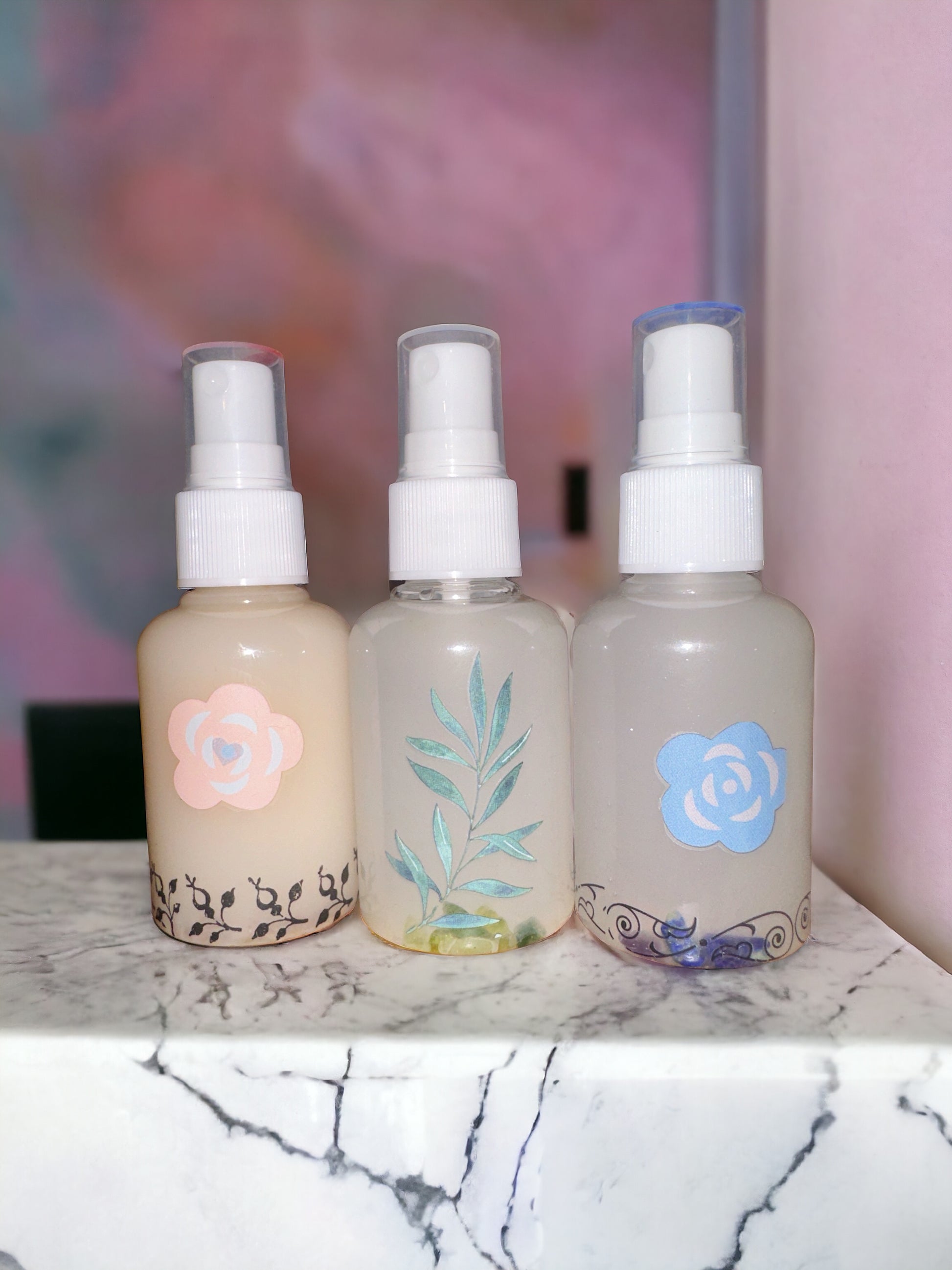 If you want to infuse, love, peace and abundance into your home and life, this set is for you! Included is one each of our three different types of all natural handmade room sprays. Our Lover Room Spray smells of roses and vanilla. Our Tranquility Room Spray is scented of lavender and frankincense and our Abundance Room Spray has primary notes of sandalwood and patchouli. Help bring peace, love, and abundance to your life with our hand crafted all natural room sprays.
