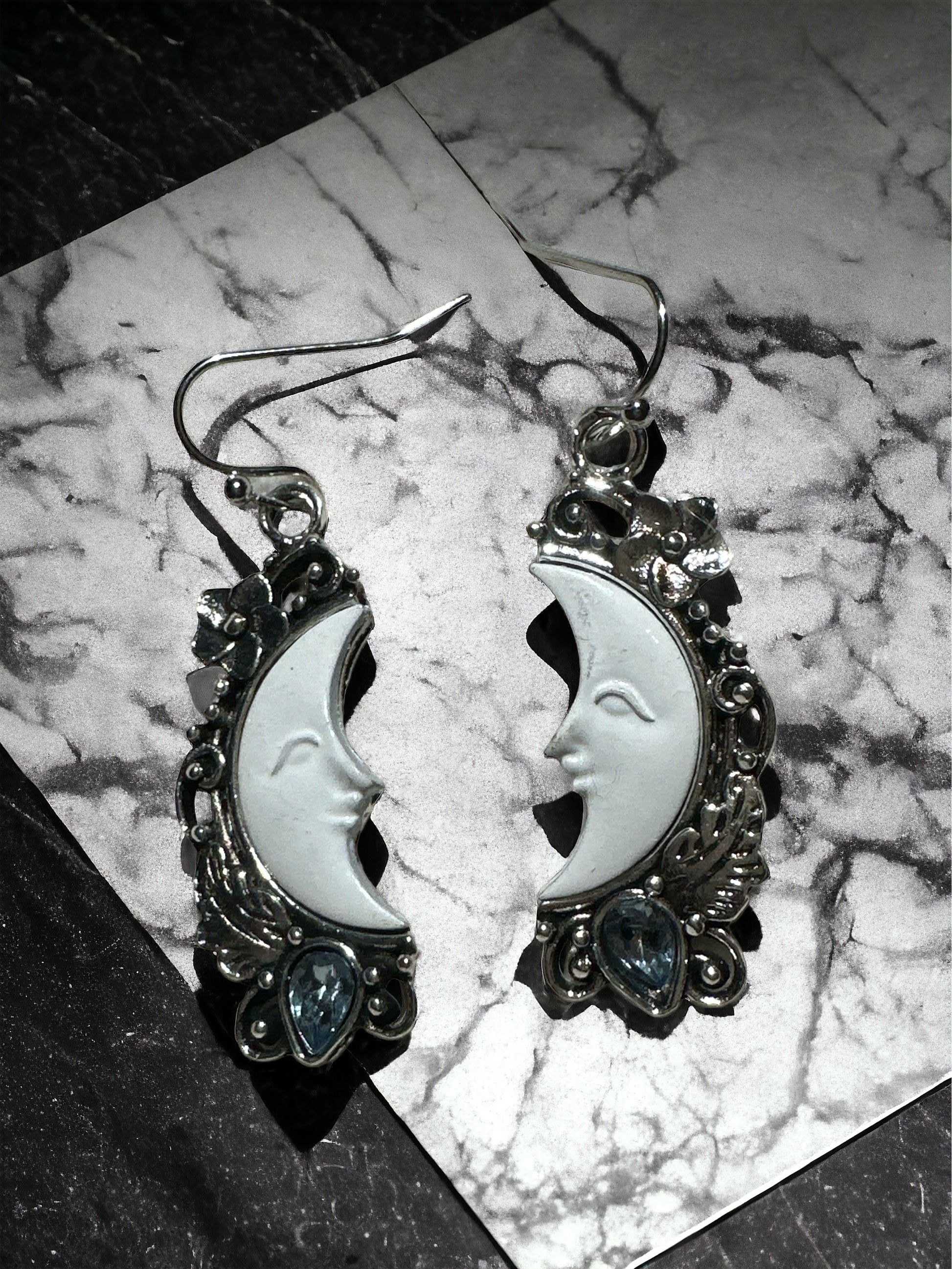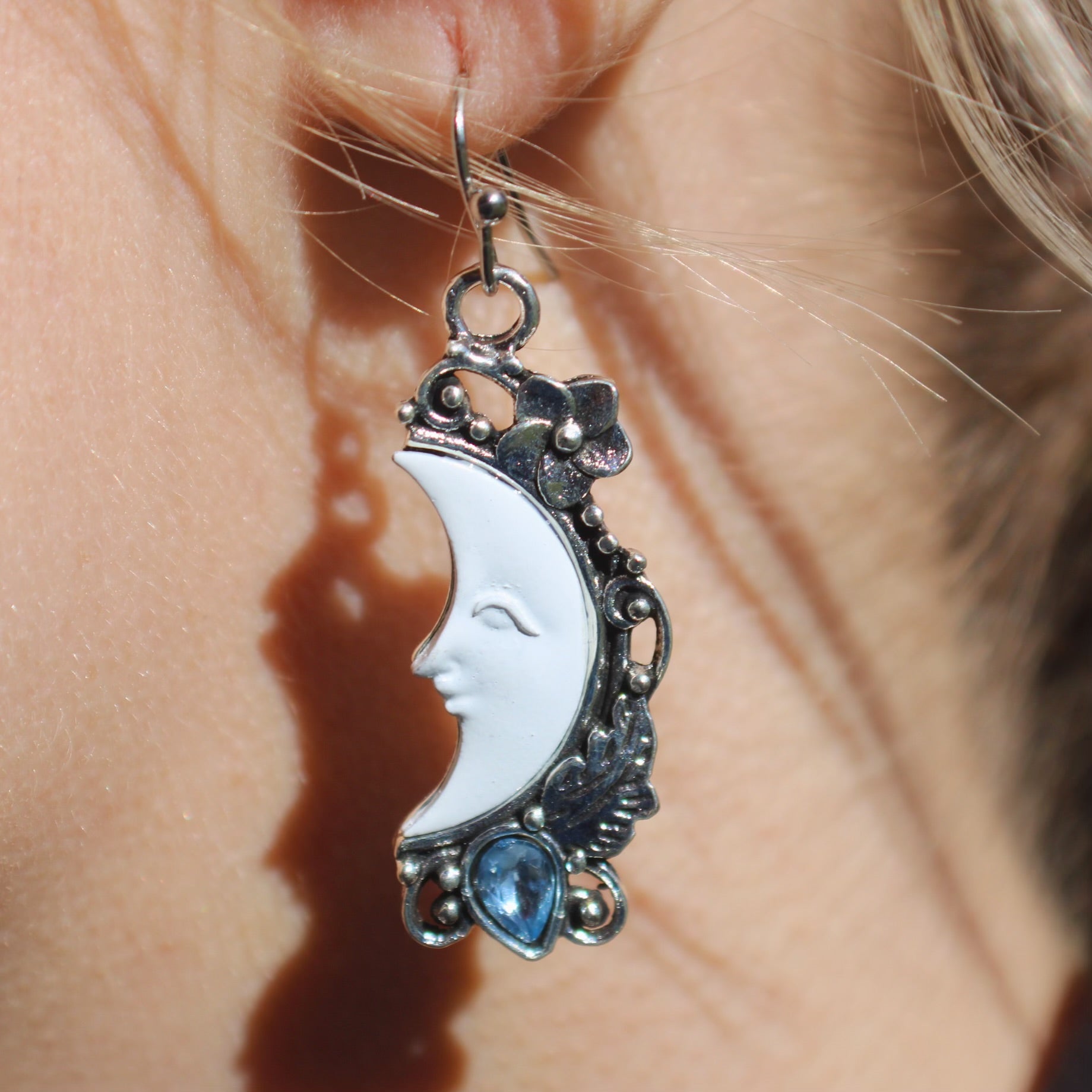 Introducing Blue Jewel Moon Earrings, imbued with ethereal and magical moon energy. Featuring stunning blue jewels and the shape of a delicate crescent moon, these exquisite earrings are perfect for adding a touch of mystique to any outfit. Channel the power of the moon and elevate your style with these unique earrings.